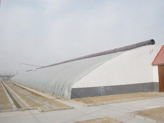 日光溫室大棚的屋面分為圓拱型和尖頂型,還有部分是平頂型,屋面上的水都會順流到水槽部位,因此我們需要做好天溝方向的坡降.水槽方向的坡降一般為千分之二點五左右,也就是4米一個開間方向的坡降在1cm左右。